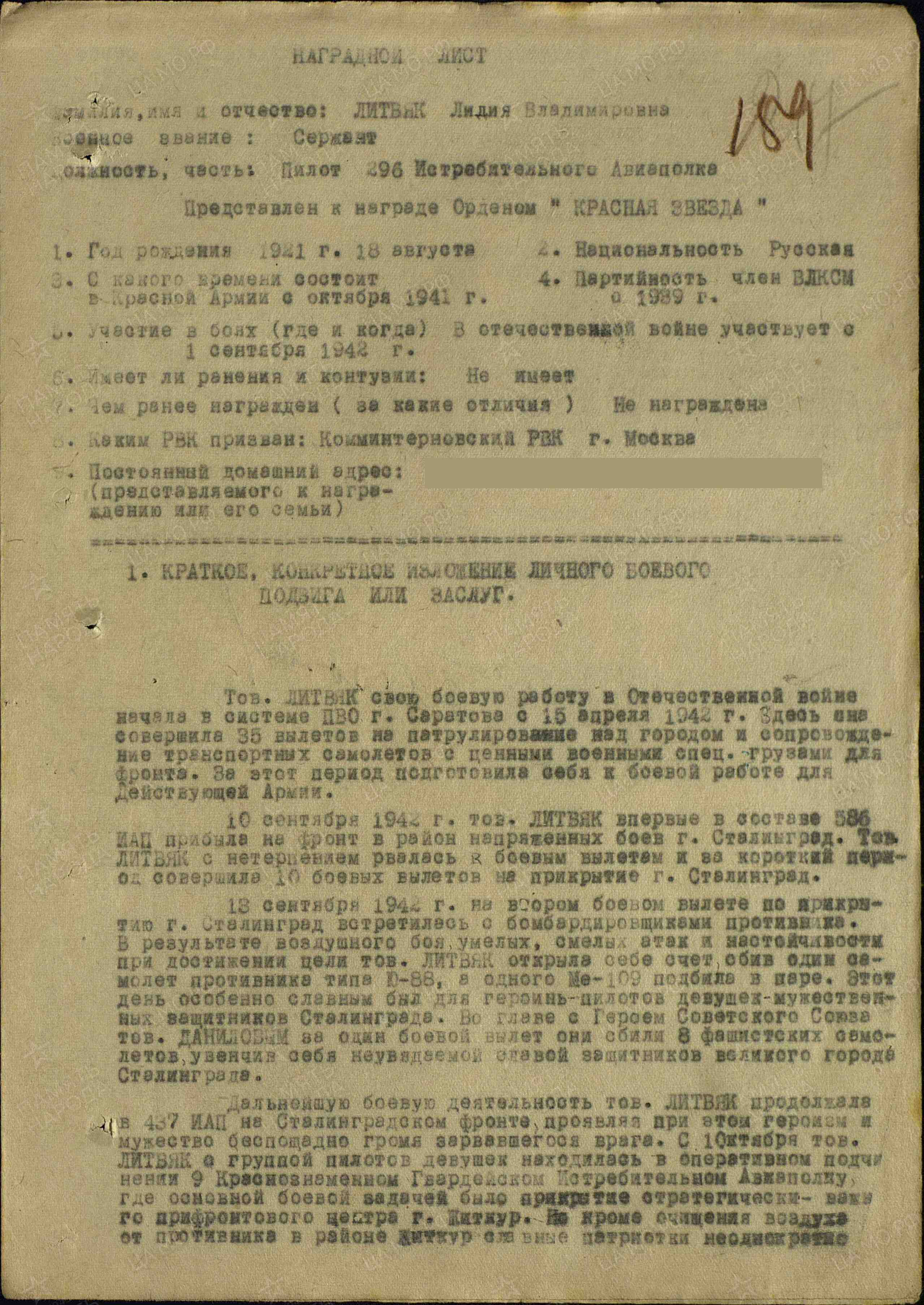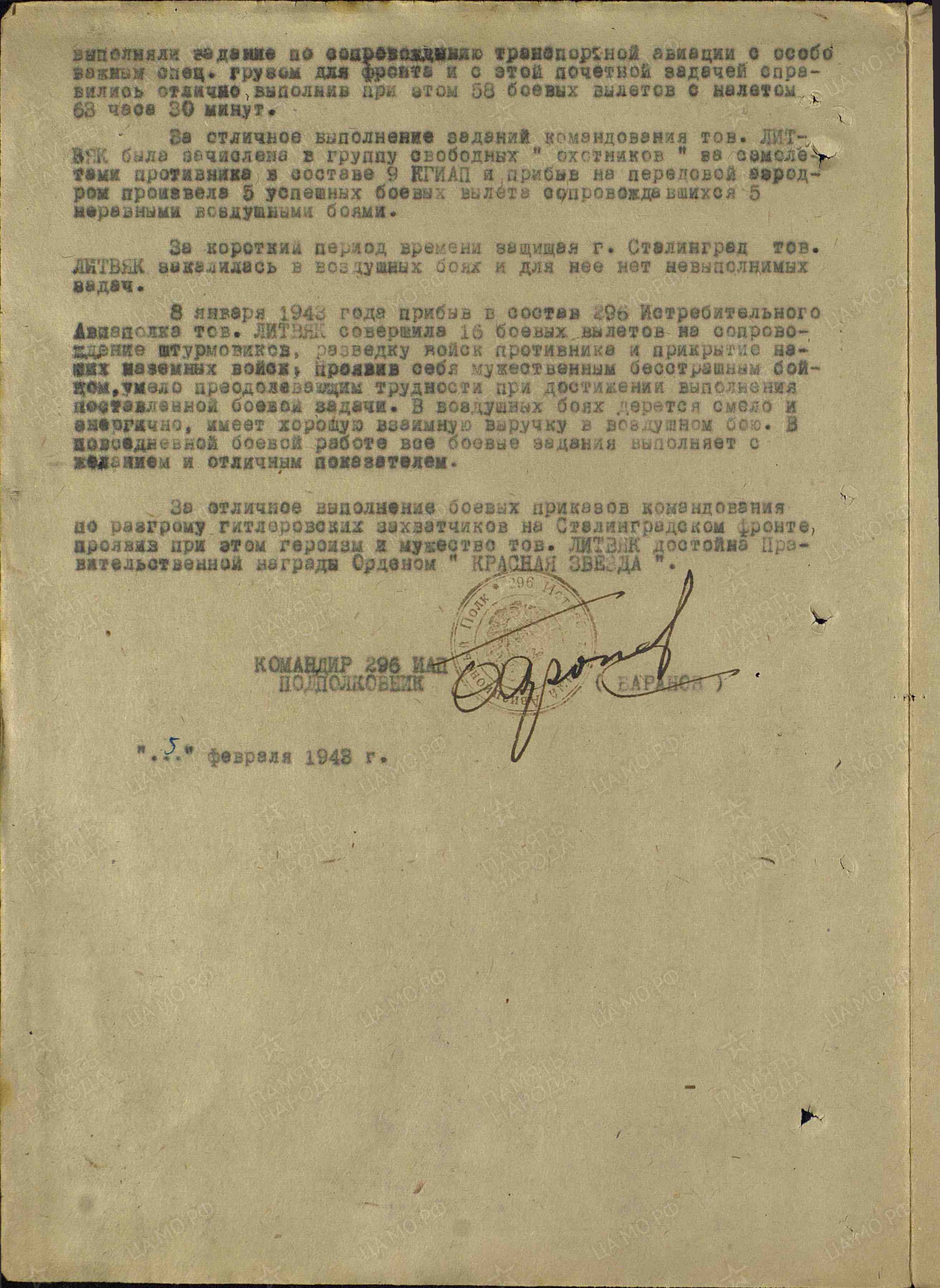 >>Литвяк перевели из 437 иап в 73-й гиап только в МАЕ 1943 г. (приказ 8-й ВА № 043 от 21.5.43 г.) Что интересно, так это звание Литвяк в приказе - гв.мл.лейтенант.