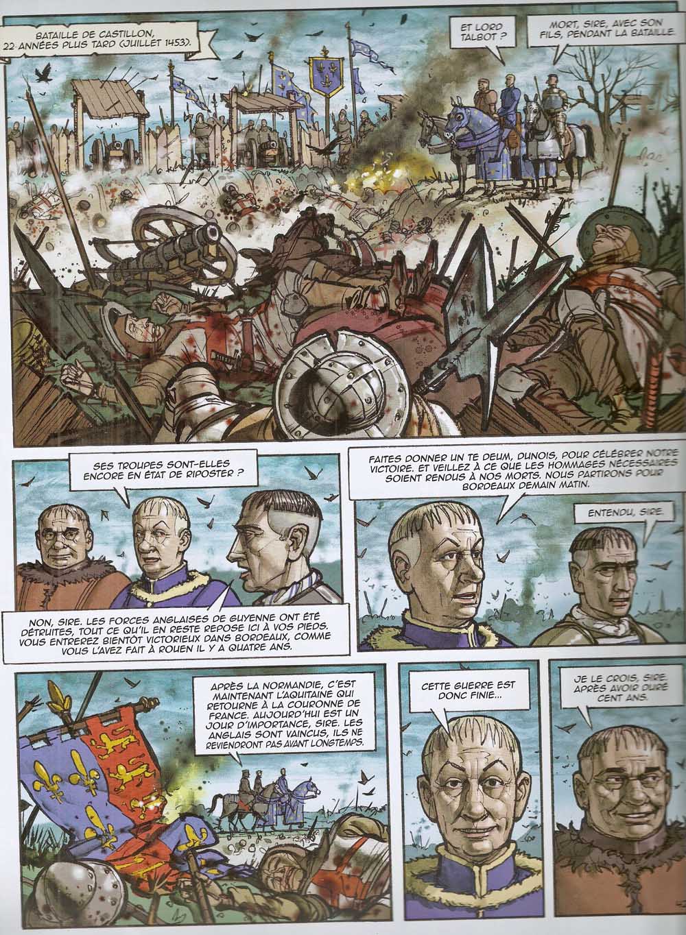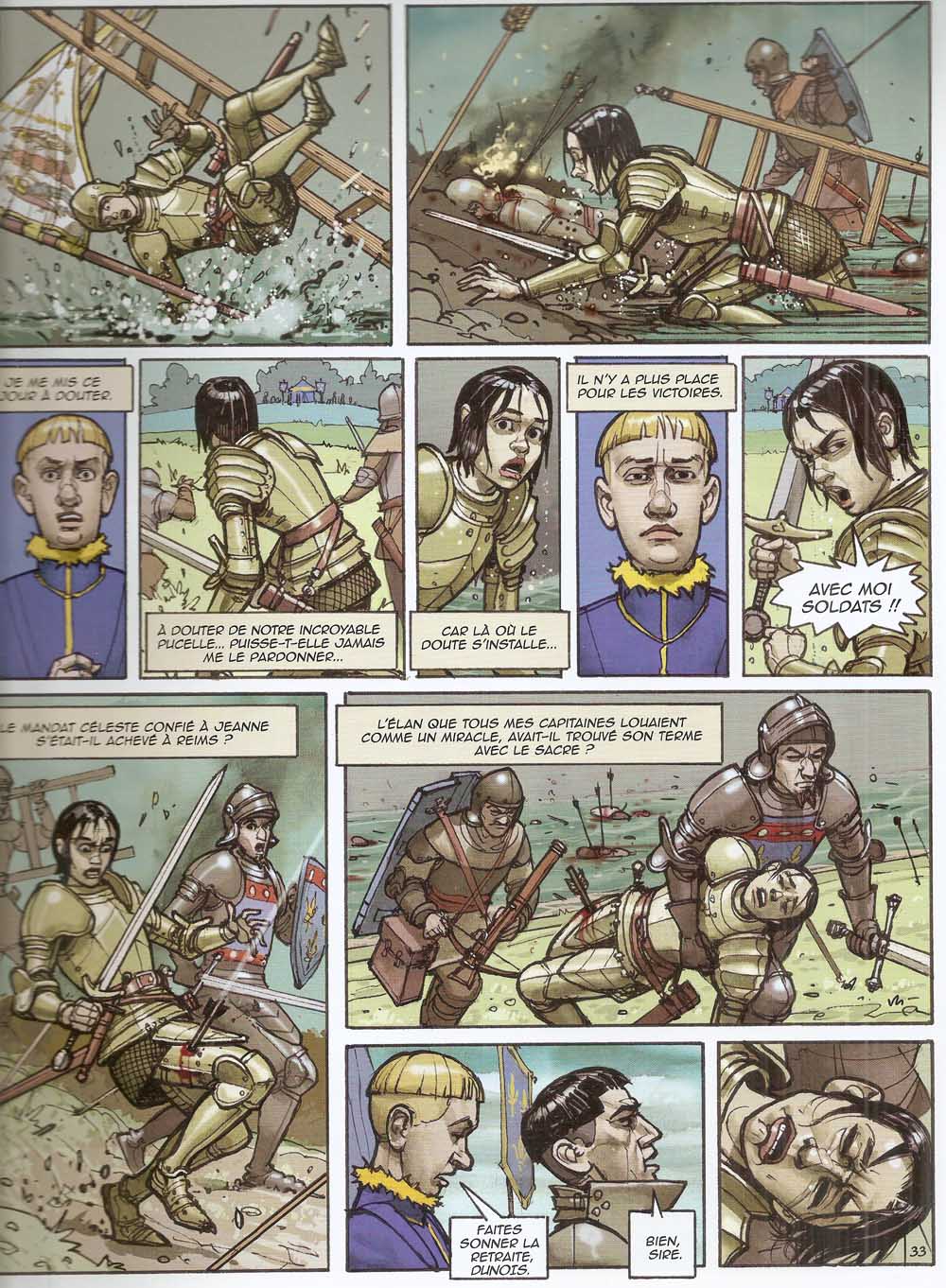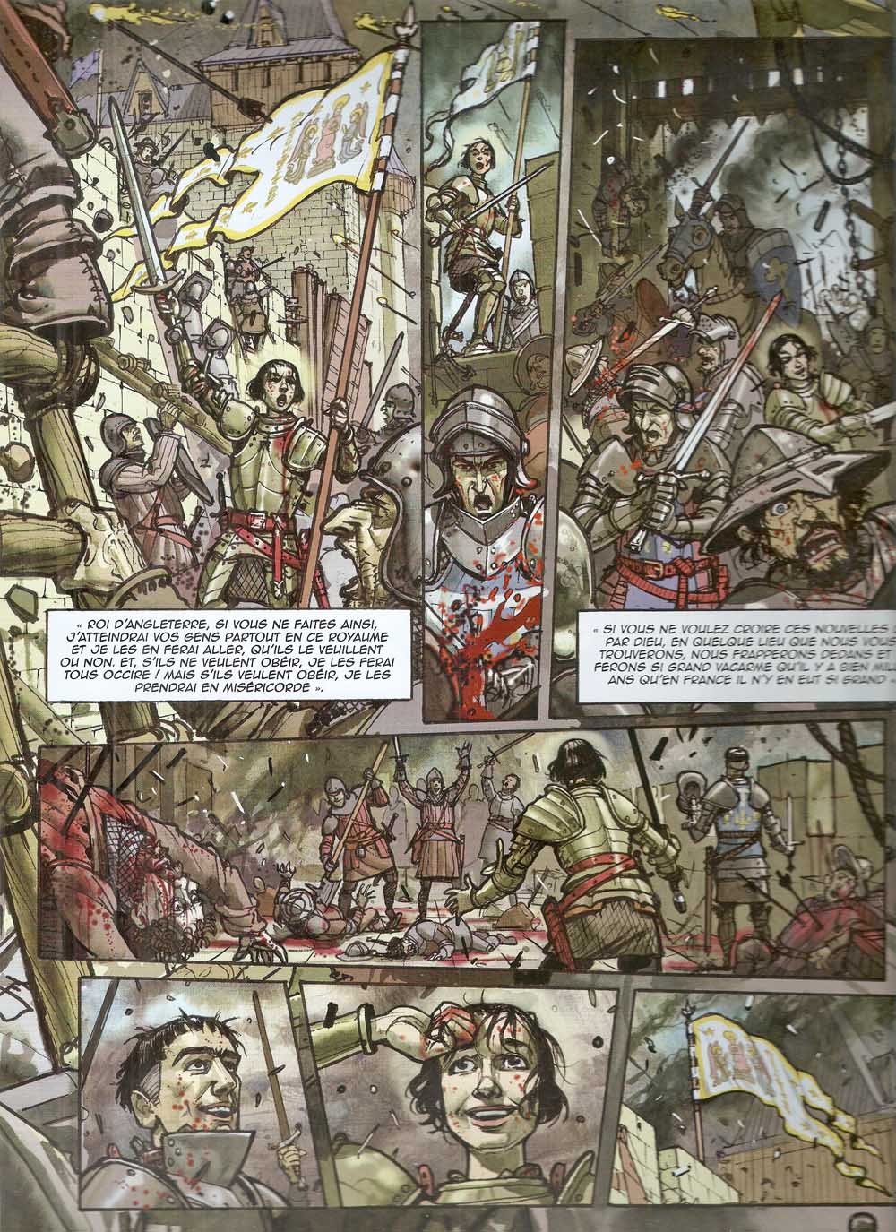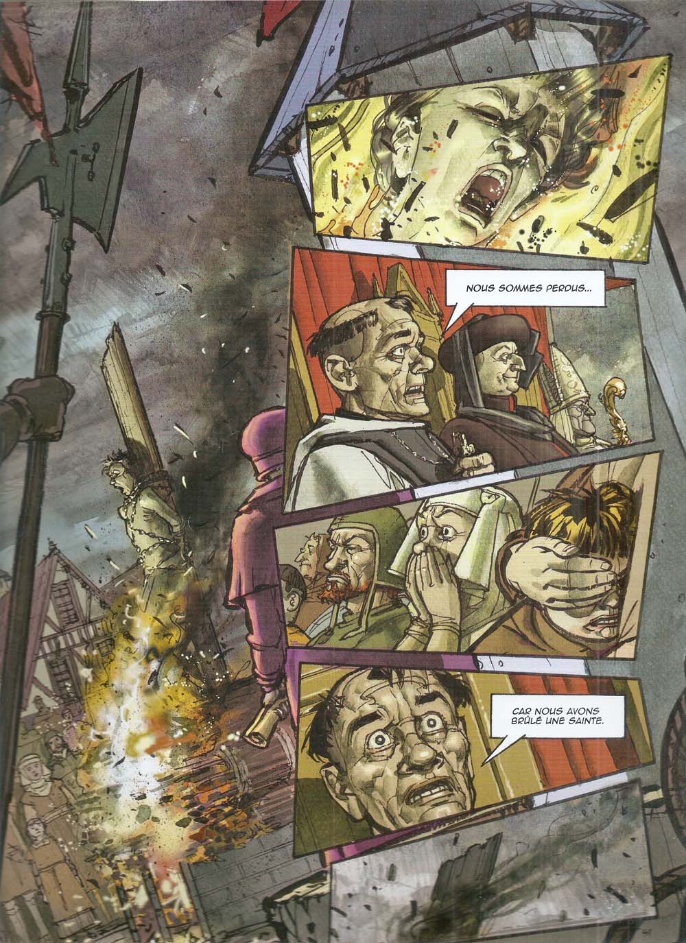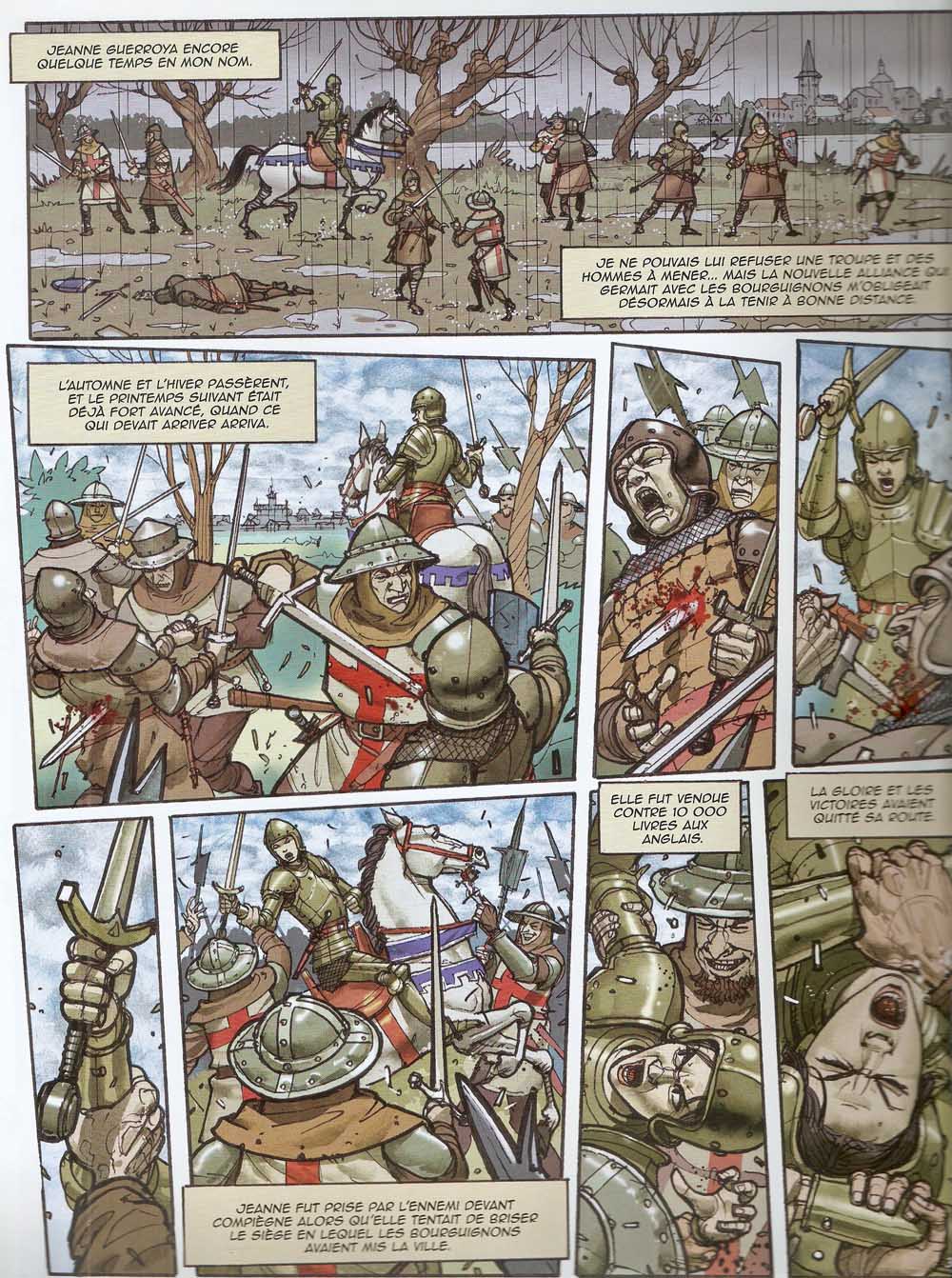 Во Франции в данный момент печатается серия исторических комиксов "Они создавали Историю". Вышли книшки про Людовика Святого, Верцингеторикса, Наполеона, Саладина, Чингис Хана и проч. Первый из перечисленных у меня есть, хотя я и не в восторге от прорисовки, второй -- вполне приличный, пусть и не выдающийся. Остальные -- или странные, или неинтересные, поэтому их аффтараф я полновесным (пока) европейским рублём не поддержал. Но вышедший недавно комикс про "Орланскую деву" переплюнул всех: