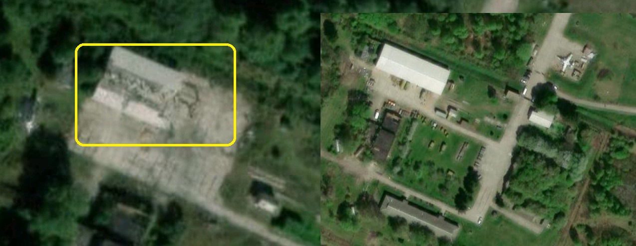 Нам предлагают посмотреть на здание которое я выделил желтым квадратом - дескать это "после удара".