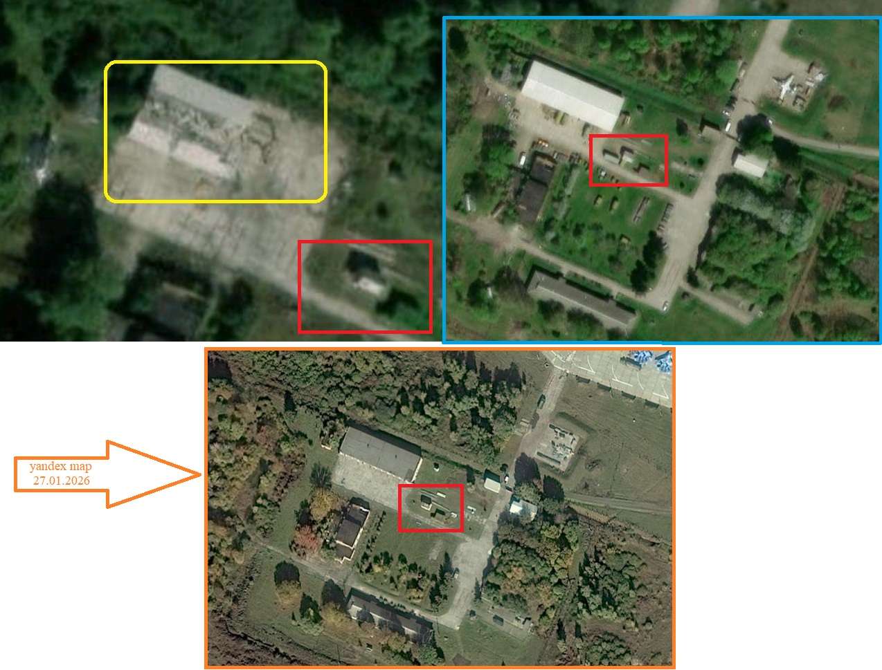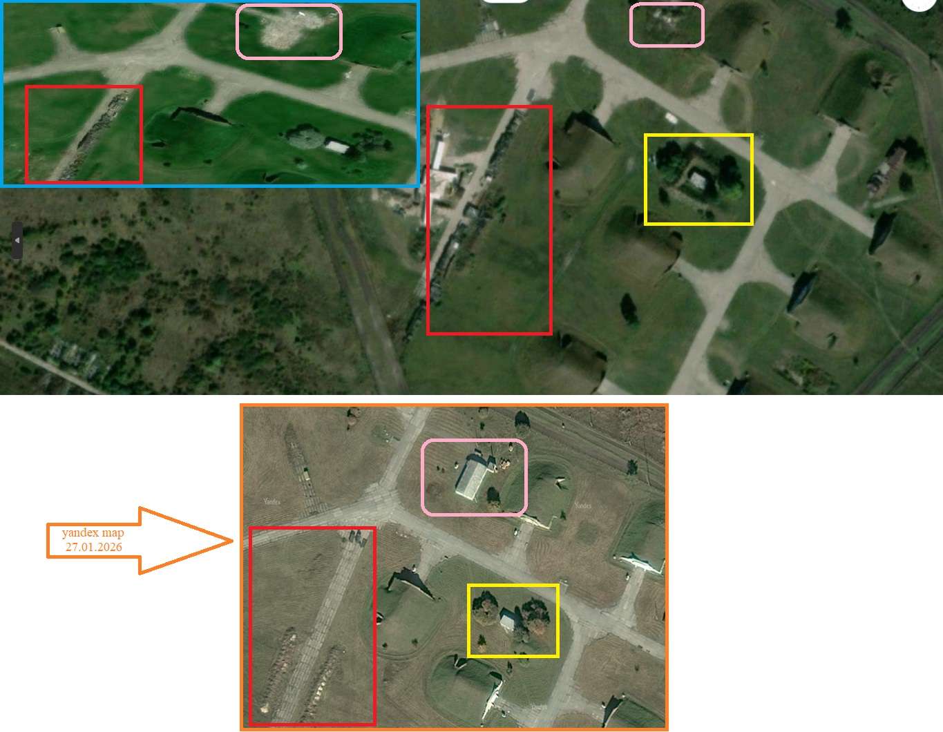 да, еще, выделил красным. Там 3 или 2 маленьких строения? И когда самое левое появилось? "до удара" или "после"?