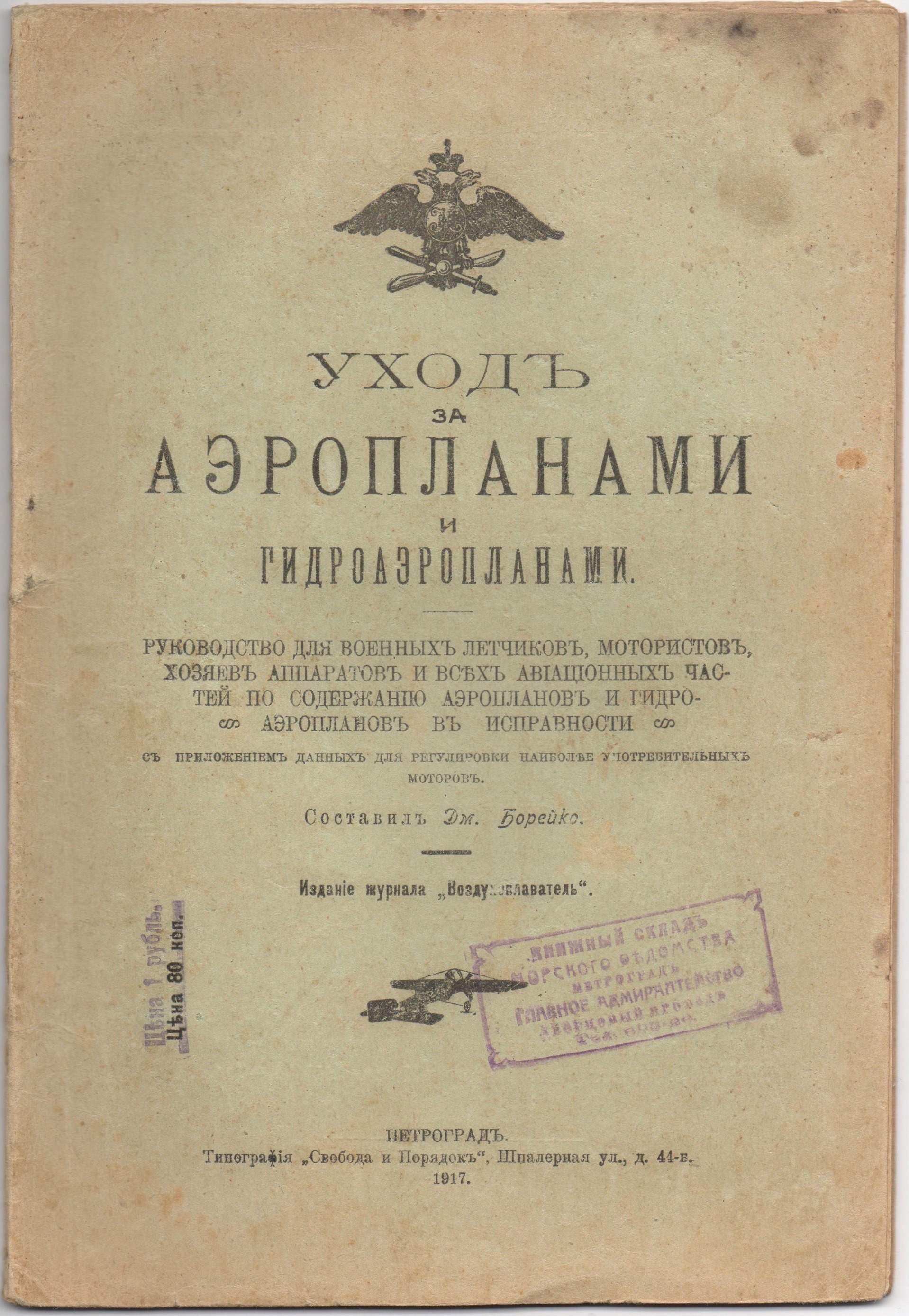 В и-нете появилось в свободном доступе руководство для военных летчиков,... "Уход за аэропланами и гидроаэропланами". Петроград, 1917 г., Стр.51.