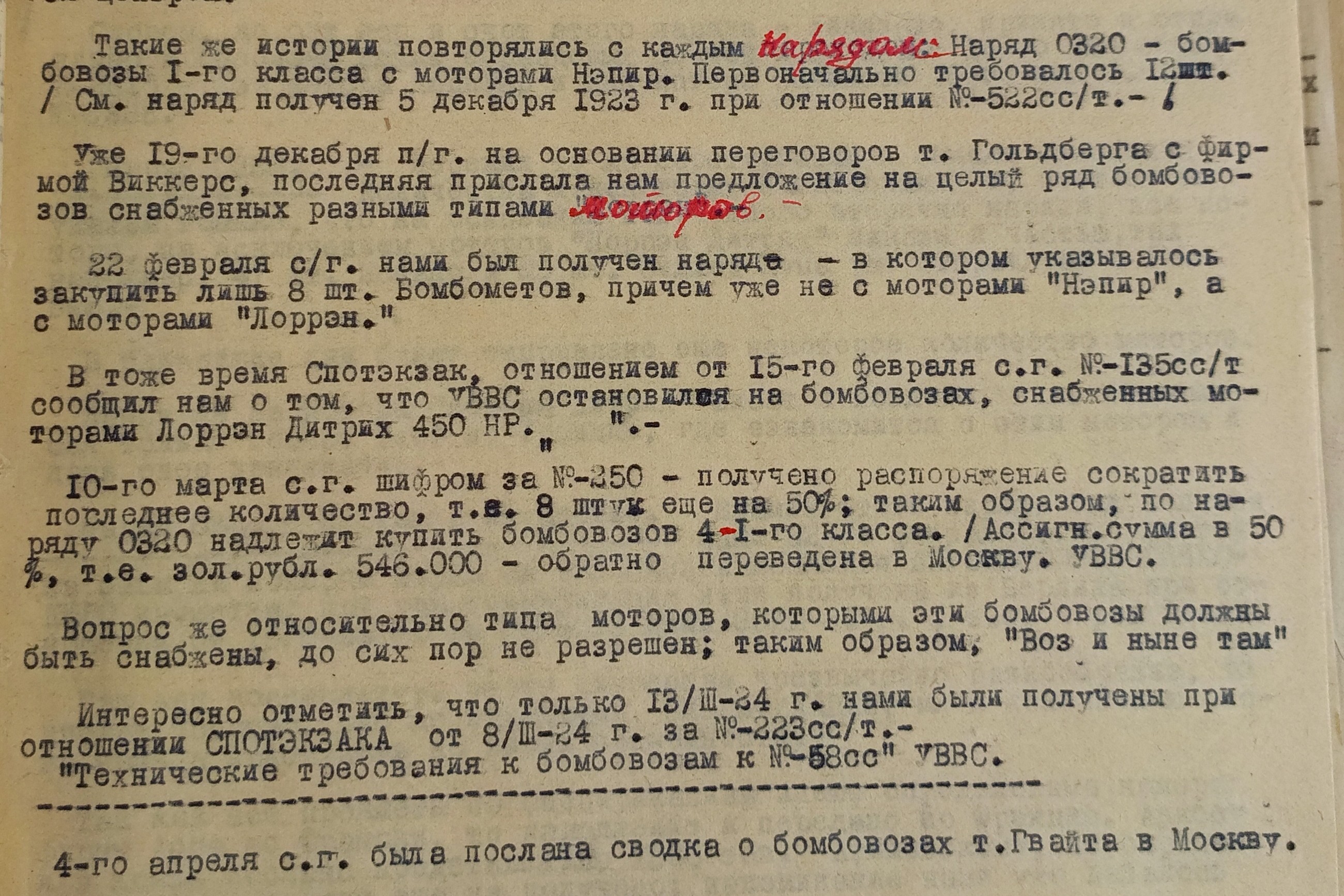 При этом в протоколе заседания президиума РВС СССР от 5 мая 1924 г. на закупку бомбовозов и авиационных двигателей в Англии согласовывалась сумма 10 млн. рублей, что достаточно много.