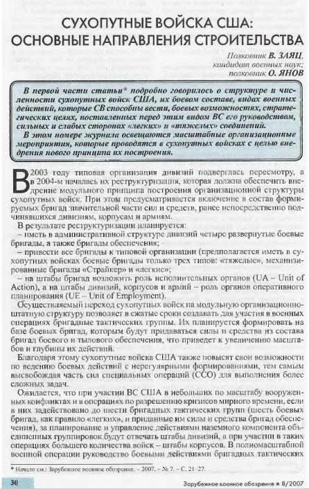 ...Широко распространенное мнение, будто схема "бригада — корпус" представляет собой кальку с "натовской военщины", неверно. На самом деле армии трех ведущих стран НАТО (США, Великобритании и ФРГ) сохраняют дивизионное звено в структуре своих армий, их бригады в основном объединяются именно дивизиями. Будущая структура российской армии внешне наиболее похожа не на вооруженные силы НАТО, а скорее на бывшую югославскую народную армию...