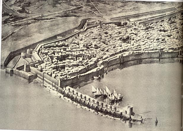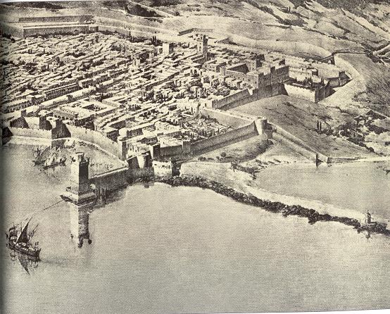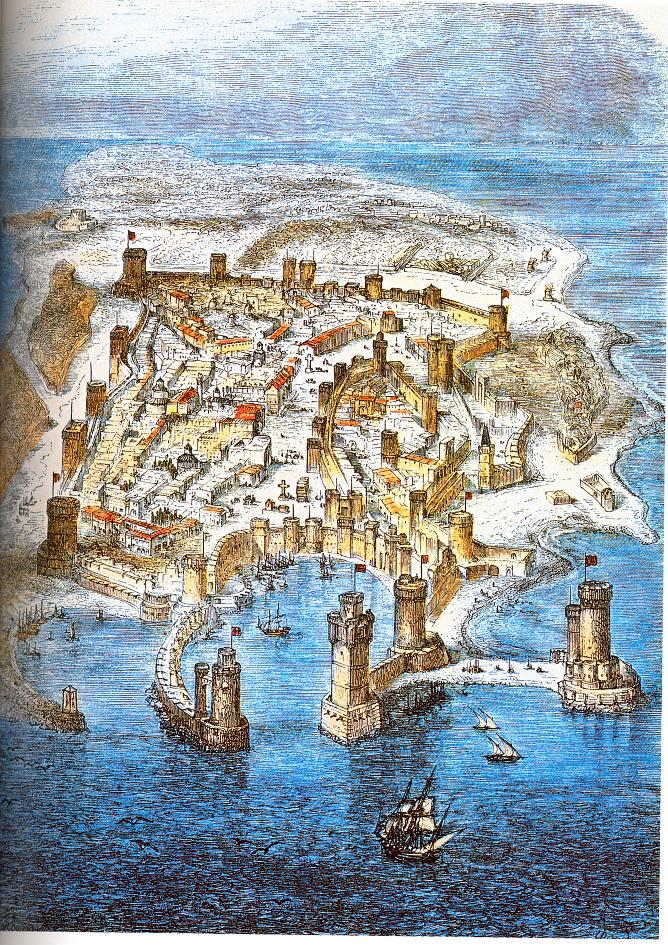 Общий вид г. Родоса в 1480 году из иллюстрированной рукописи XV века.