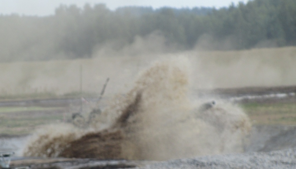 Т-90 выходит из бассейна, отряхивается.