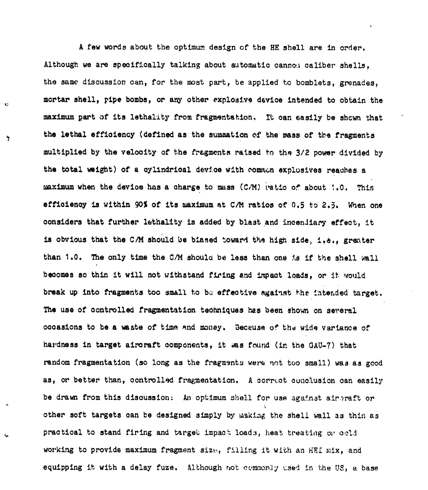 Оптимальное соотношения вв к массе металла 1:1. Практически оно в снаряде недостижимо, соответственно руководство по выбору коэффициента наполнения ОФС снаряда: «делать стенки снаряда как можно более тонкими»