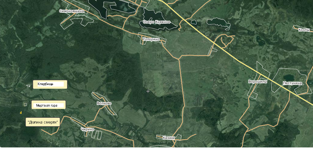 Слева есть точки: "Долина смерти", "Мертвая гора", "Кладбище",
