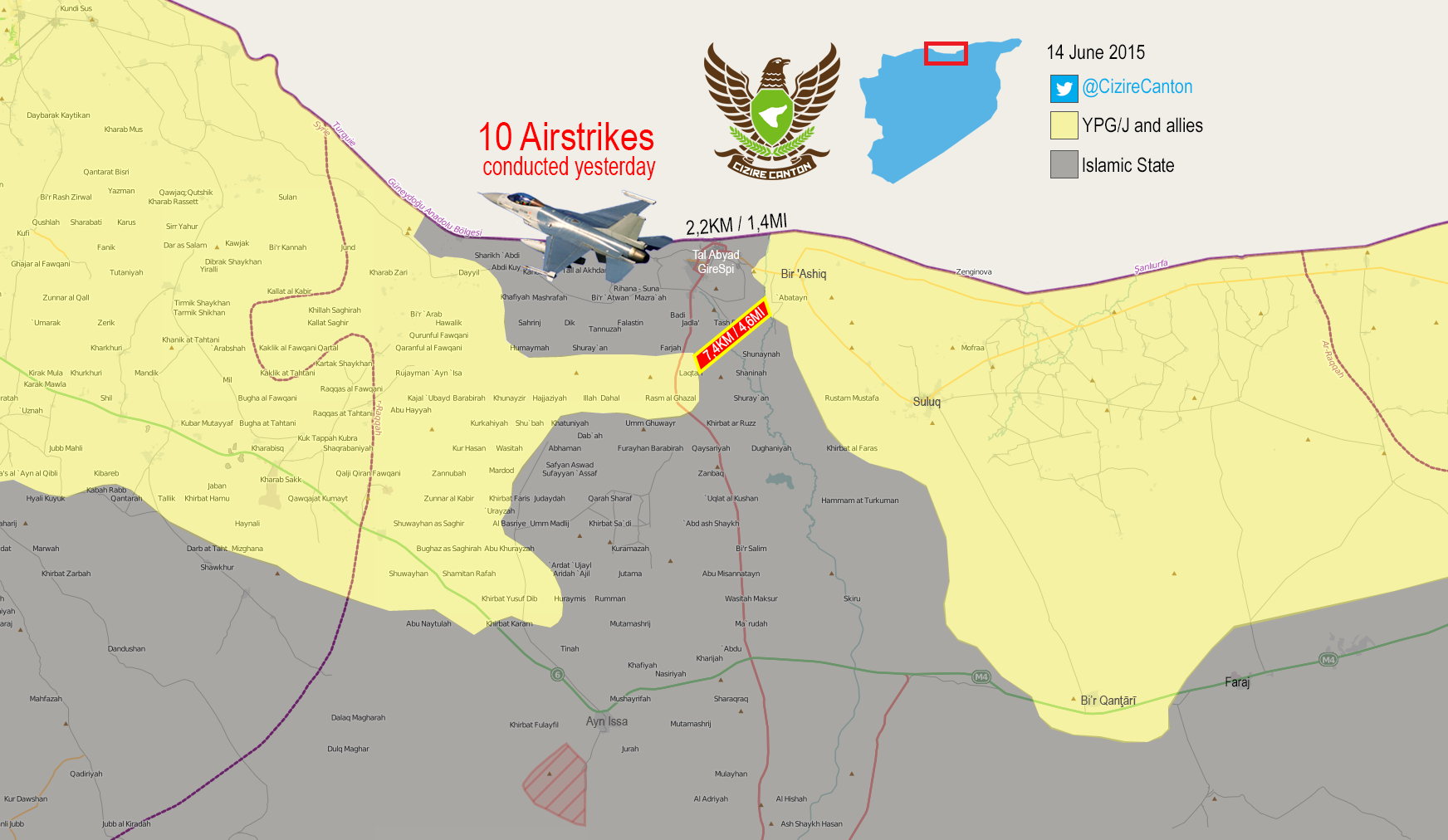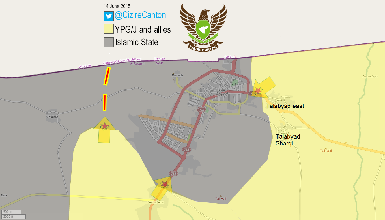 карты района боевых действий между курдами и ИГ на севере