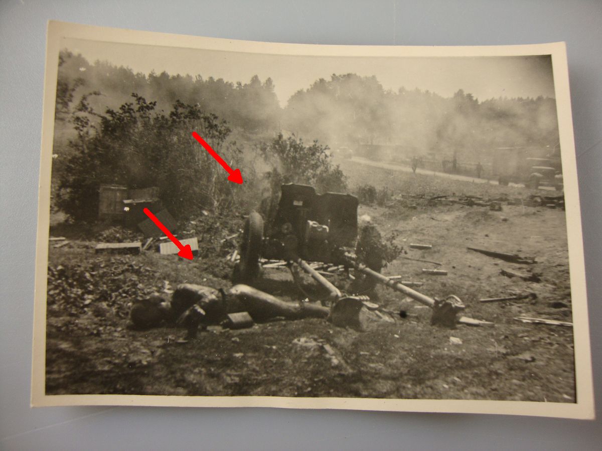 Das Pakgeschütz, das ich mit meiner s. MG Gruppe außer Gefecht gesetzt habe. In der Gegend Autobahn Smolensk-Moskau, Juli 1941