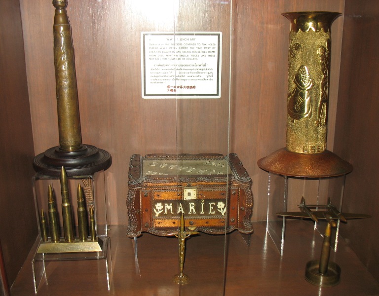 Солдаты, запертые в лисьих норах в ходе ПМВ, часто проводили время, создавая прекрасные и полезные предметы обихода из стреляных гильз. Вещи наподобие этих могут стоить сотни долларов."