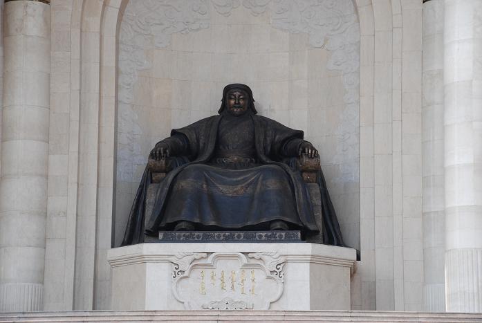 а лицо его в пол оборота было повернуто в сторону здания правительства, то теперь вот они так и глядят друг на друга. Чингисхан и Сухебатор.