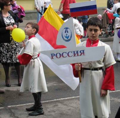 почему-то Осетия, причем значок "Россия" в руках осетинского ребенка смотрелся забавно