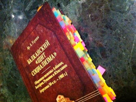 Закладки синего цвета - это Албания. Желтый - СФРЮ. Ну и так далее. Сильно подозреваю, что немногие читали работы Улуняна так, как я. Но с ходу замечу, что Албания - не мой профиль. Вот его исследования по Румынии, Болгарии и Варшавскому Договору я могу раскритиковать в его слабых местах, но не Албанию.