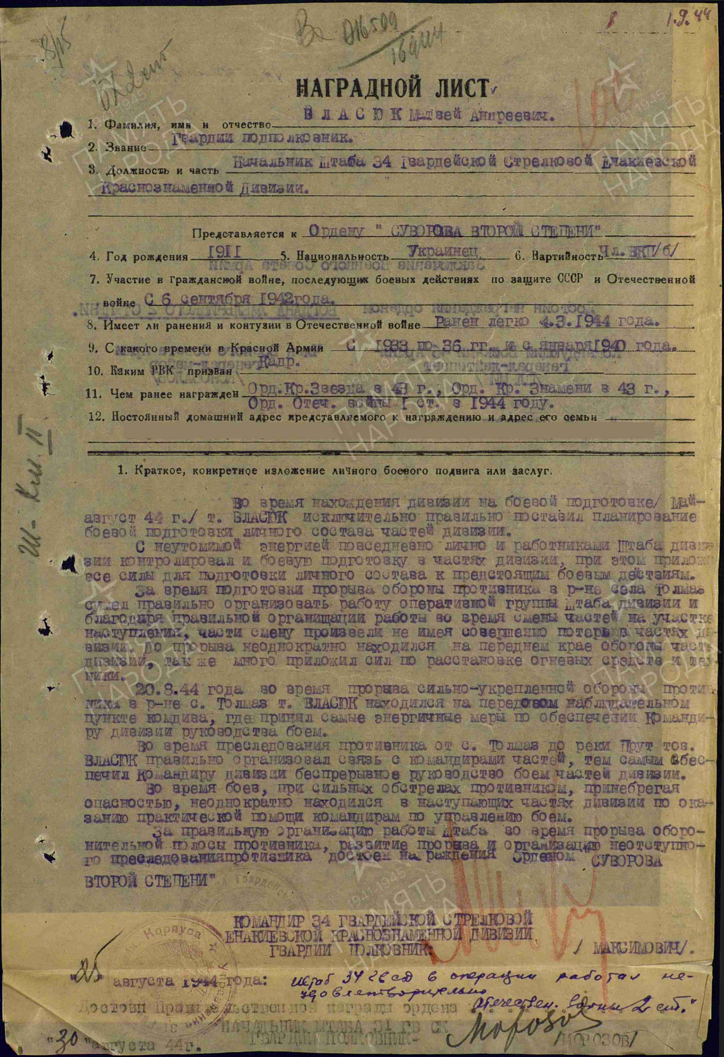 Поискал по 31А , нашёл наградной на Власюка Матвея Андреевича - вроде по наградам подходит....