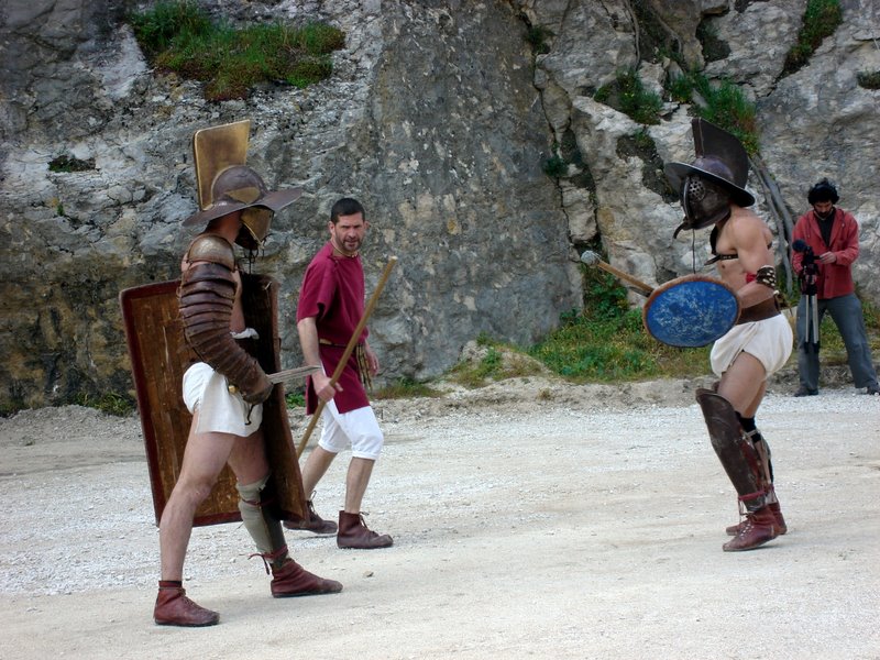 "Гладиаторов" с такой штуковиной (из кожи :-)) мы видели. (+)