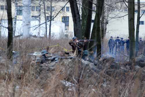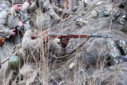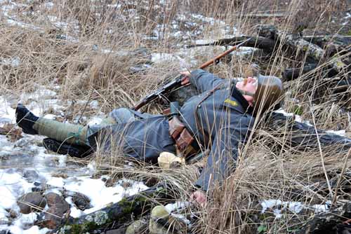 На левом фланге - снайперкое отделение. Снайпер, автоматчик, наблюдатель с биноклем... нет, не с биноклем - цифровик Кэнон у него. Халтурщик!!!