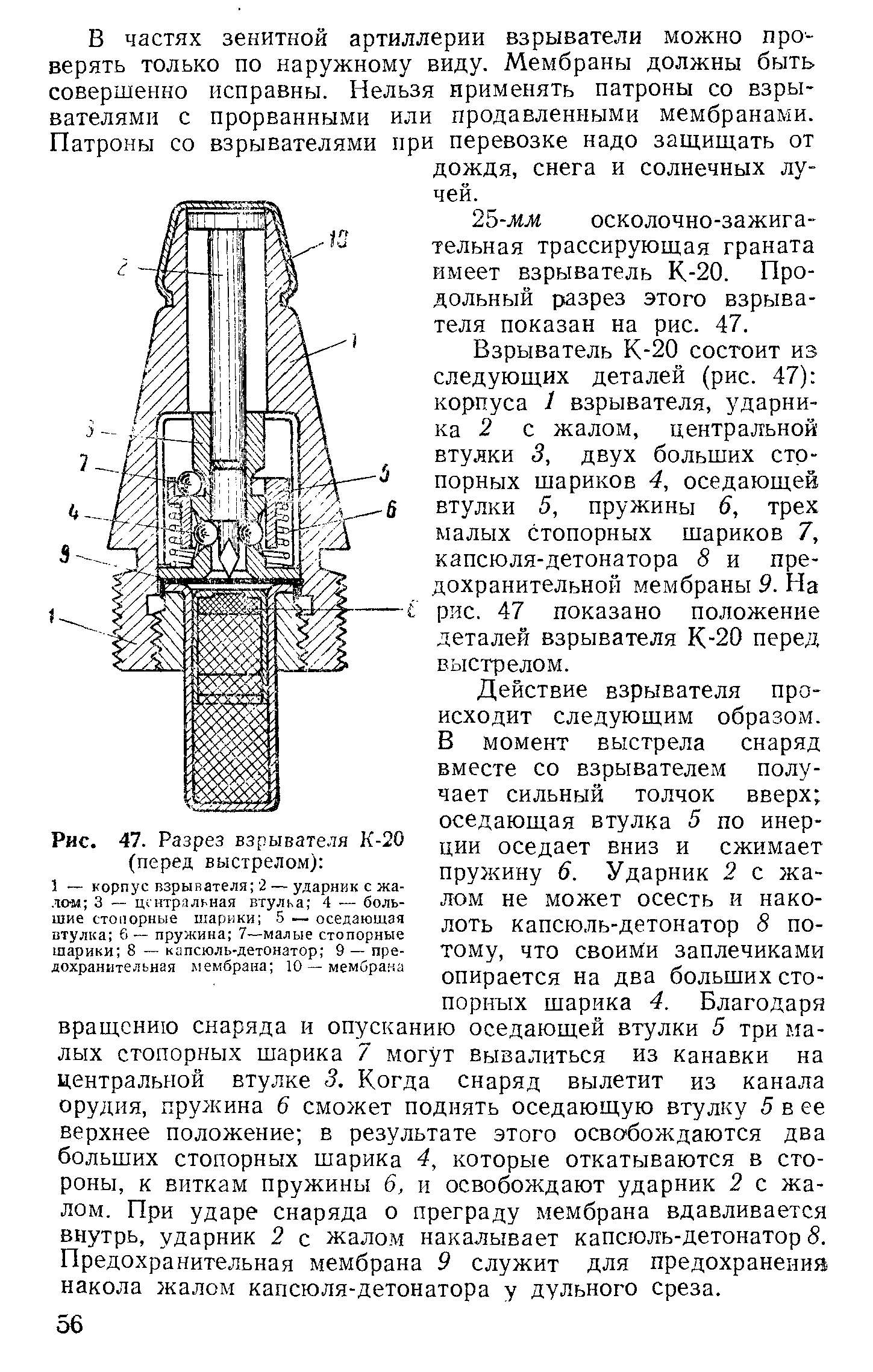 я выложу для наглядности прямо сюда 56 страницу данной книги, на которой и находиться описание взрывателя К-20(который, отметим и применялся в снарядах к ВЯ-23):