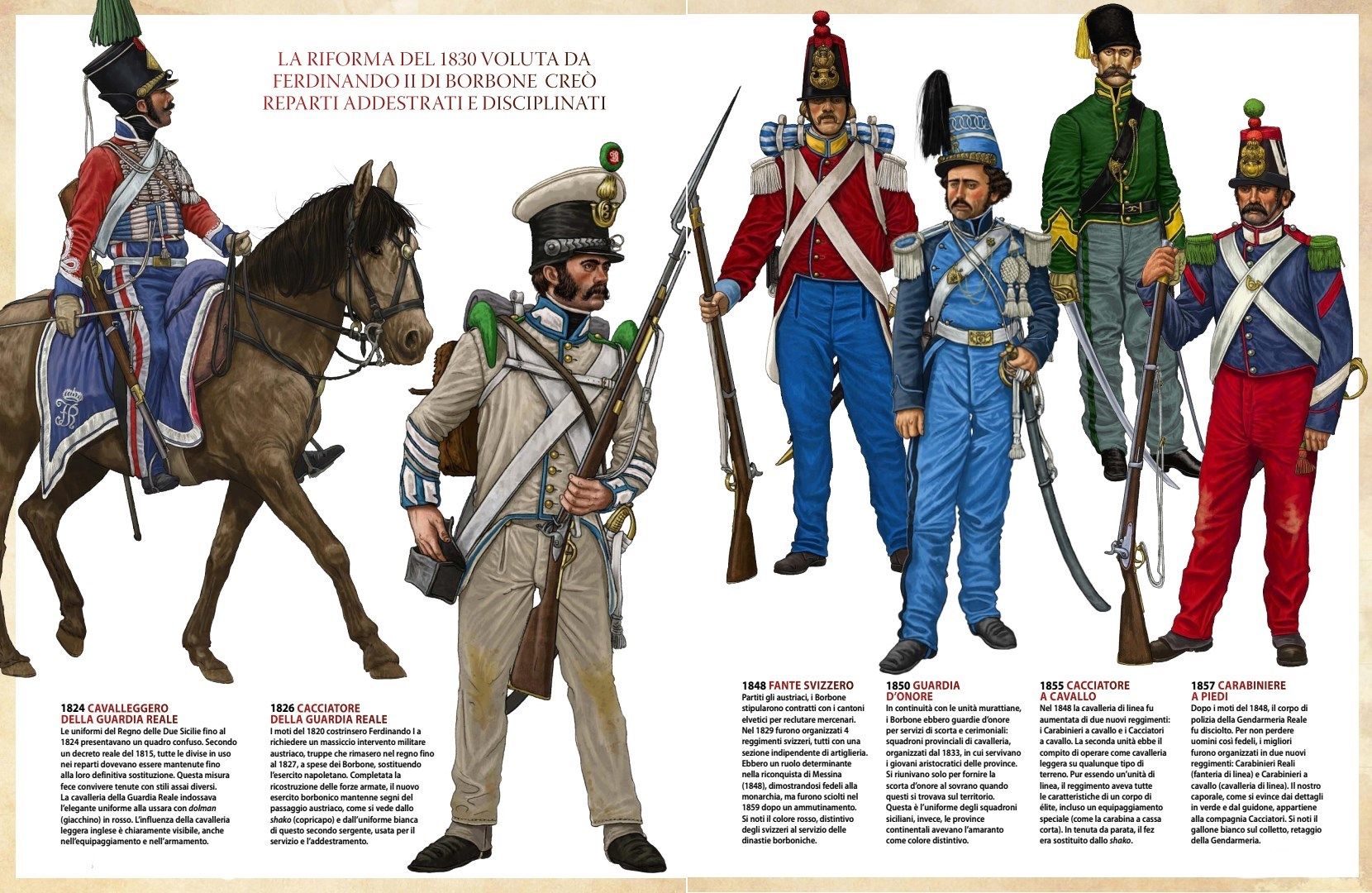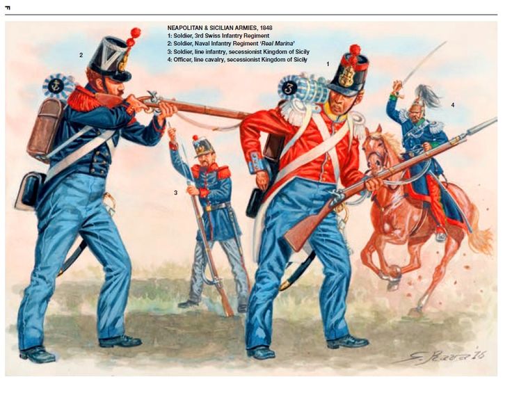 >"«Посудите сами, — говорил один недовольный офицер из неаполитанцев, — при Франческе у нас было несколько форм, четырех разных цветов панталоны, считая белые летние, а теперь как нас одели? Стыдно ходить по улице, служба потеряла весь престиж».