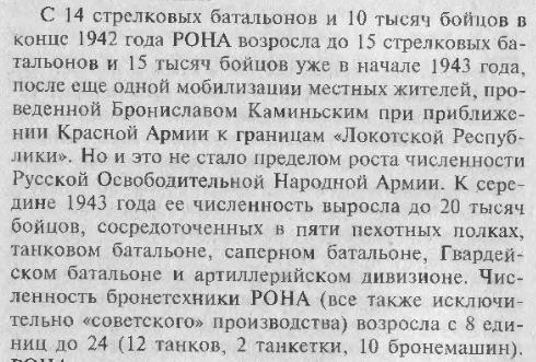 далее говорится о потери техники в августе 43-го. К ноябрю 43-го РОНА восстанавливают. В подавлении Варшавского восстания у нее 2 Т-34 и 1 СУ-76.