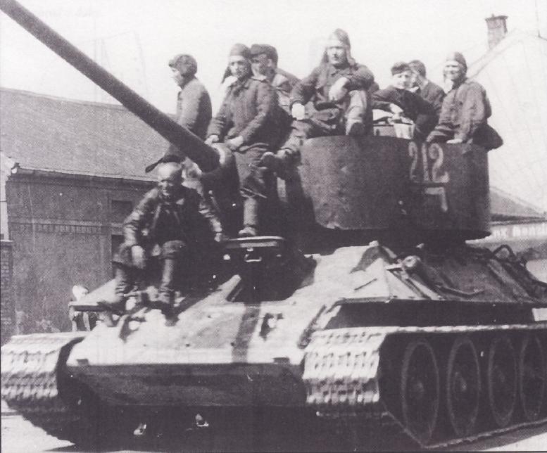 Пробоина на экране , а башня цела. Прага 10.05.45