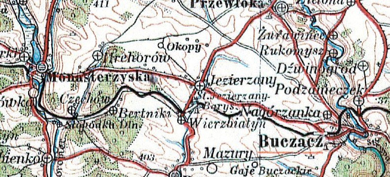 Карта 1928 г. Дорога Бучач-Монастырыска.