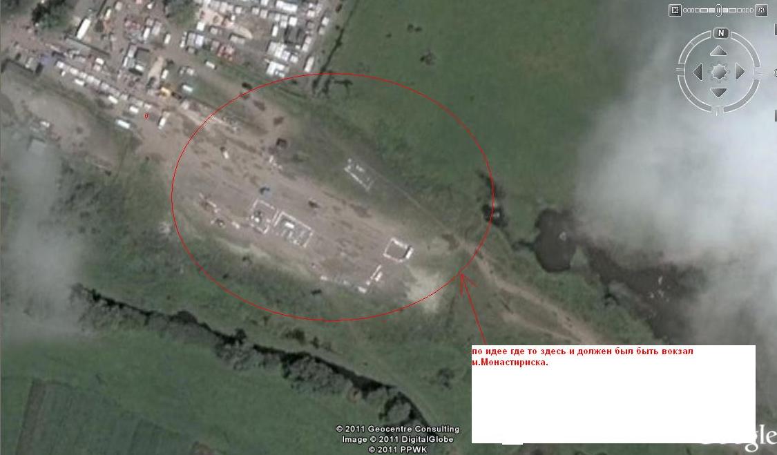Вокзал должен был находиться аккурат за поворотом жд на Монастырыска.