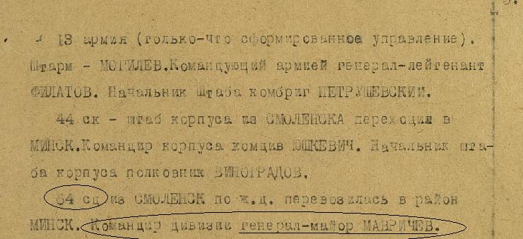 А в ЖБД ЗапФронта на 22.06.41 ген.Мавричев
