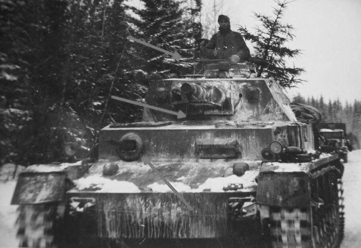 Как видно, они почти не имеют зацепок для идентификации, единственно, на 2 снимке характерные корзины для запкатков встречались у нескольких танков, на первом и последнем снимке кресты на бортах корпуса оставались в незакрашенном квадрате, встречается также на группе танков, но это очень косвенный признак. Подписанных снимков единицы, а учитывая, что к зиме 41/42 у немцев танков было критично мало и использовались они преимущественно небольшими группами в качастве "пожарных бригад" на широком фронте при почти полном отсутствии маркировки определить их принадлежность трудно.
